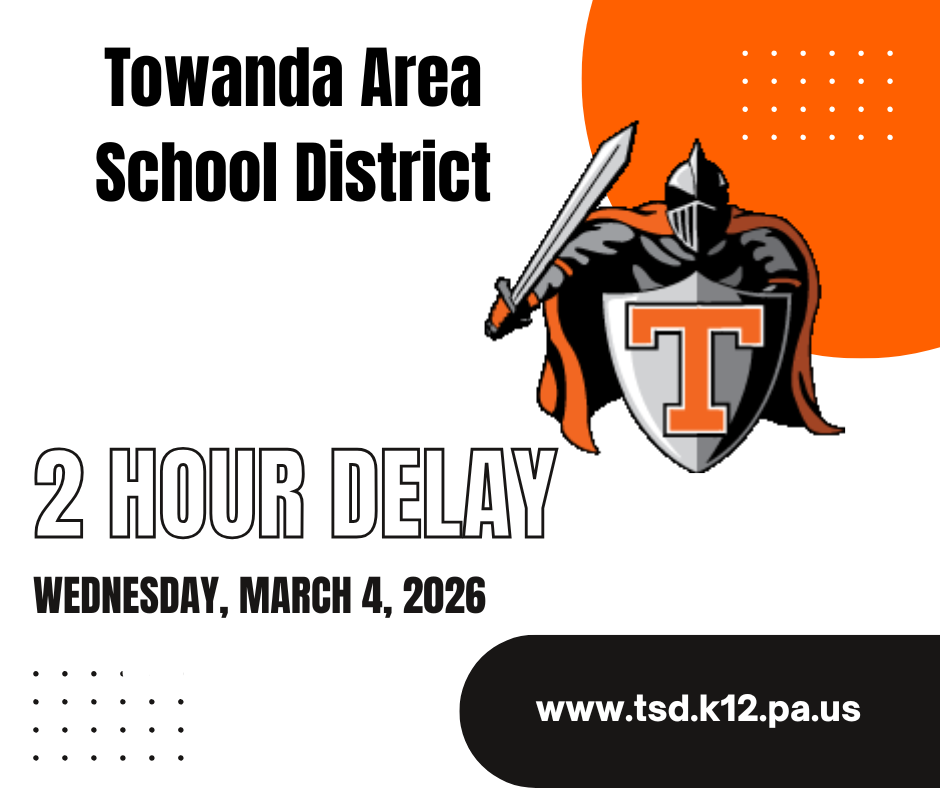 Towanda Area School District parents and guardians, please be advised that the opening of school will be delayed by 2 hours today. Your child should report to school between 9:45 AM and 10:00 AM. K...